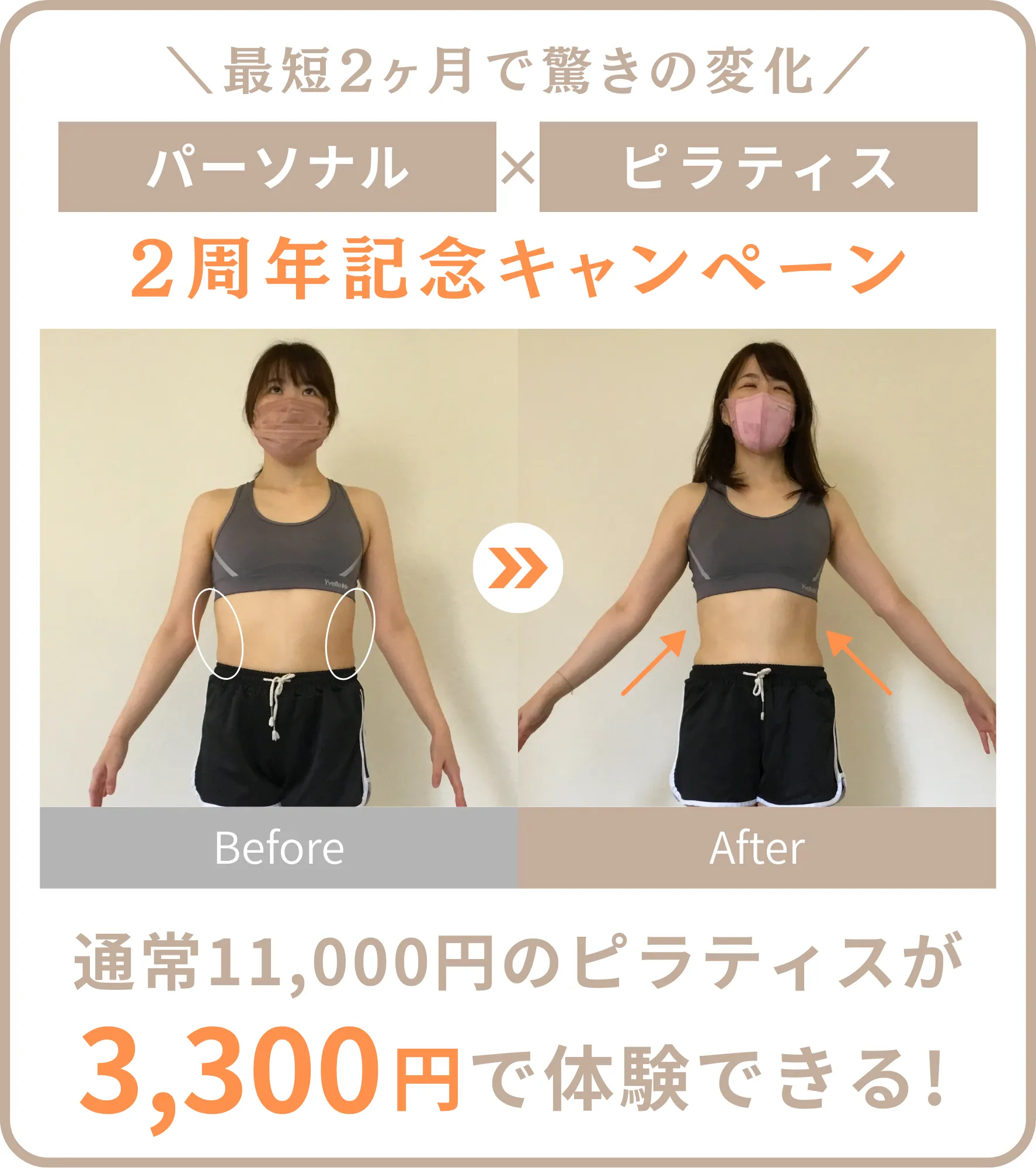 2ヶ月経つ頃には、「人生で初めてくびれができた!」とお喜びいただけました。